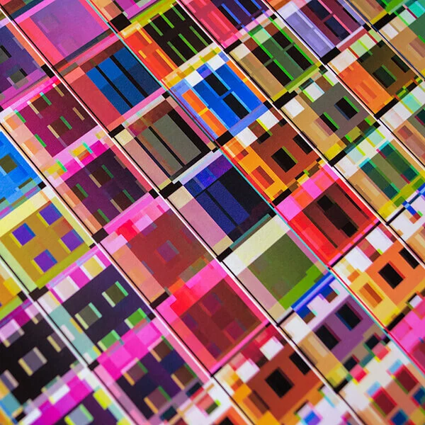 Professor Carinna Parraman invited me to be a guest exhibitor at Impact 6, held at UWE, University of the West of England, a few years back. I was delighted to be offered the chance to install a 2m square 9 panel Lumen / REZ piece behind the speaker's chair in the art school's new atrium.