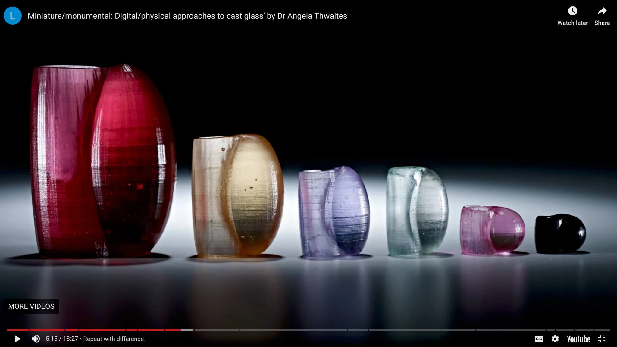 I’ve been making and refining my glass edition, entitled Vessel, over the summer. It remains a work in progress. The top image in this email is of a 3d printed, one to one scale PLA maquette of the work, ready to be burnt out in the kiln, ahead of being cast into glass.